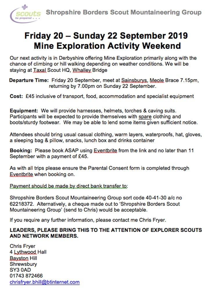 If you have any questions you should ask Chris Fryer and say that you are from Boreatton scouts. His email is on the sheet.